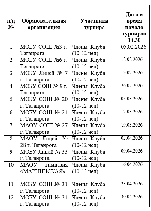 ГРАФИК ТУРНИРОВ "TERRA DEMOCRATIA. Земля Демократии"